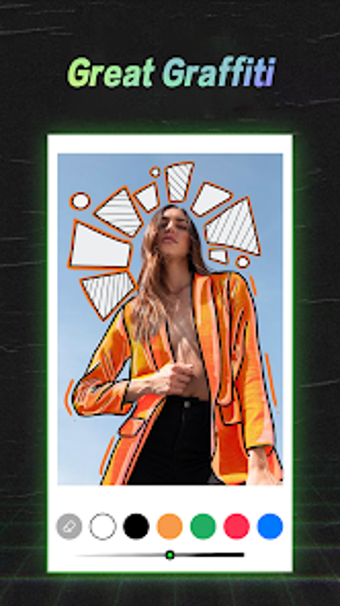 Photo Editor Lab มีวิธีสนุกสนานให้ผู้ใช้สร้างสรรค์รูปภาพของพวกเขาได้อย่างสนุกสนาน คุณสามารถ เพิ่ม Graffiti ของคุณเอง โดยการวาดบนภาพของคุณ ผู้ใช้สามารถเลือกจาก สเปกตรัมของสี และปรับความหนาของแปรงตามความชอบของพวกเขา ในกรณีที่คุณทำผิดพลาด ยังมี เครื่องมือลบ ที่มีอยู่เช่นกัน